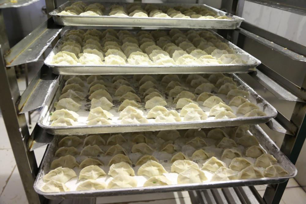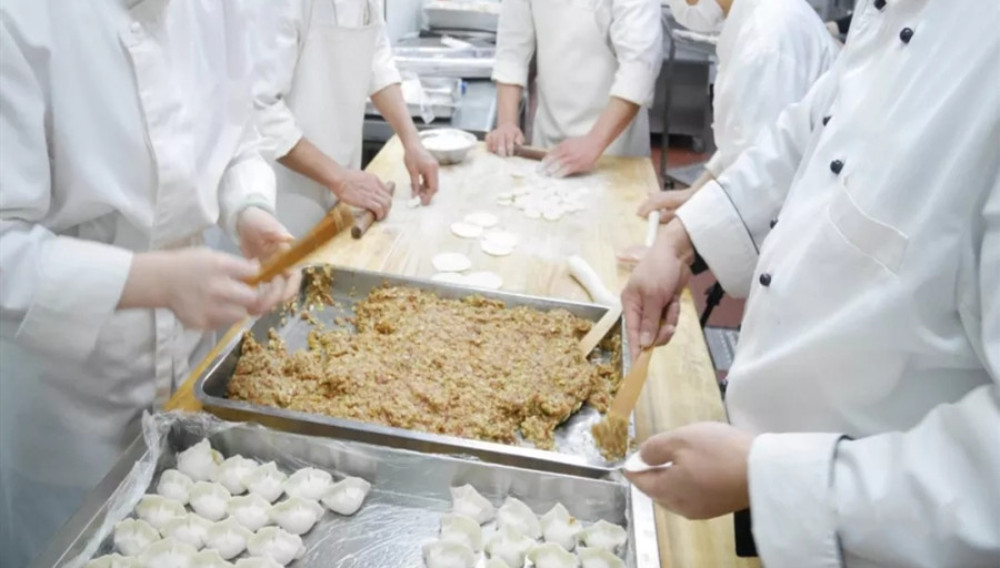 餐廳工作人員精心準(zhǔn)備餡料